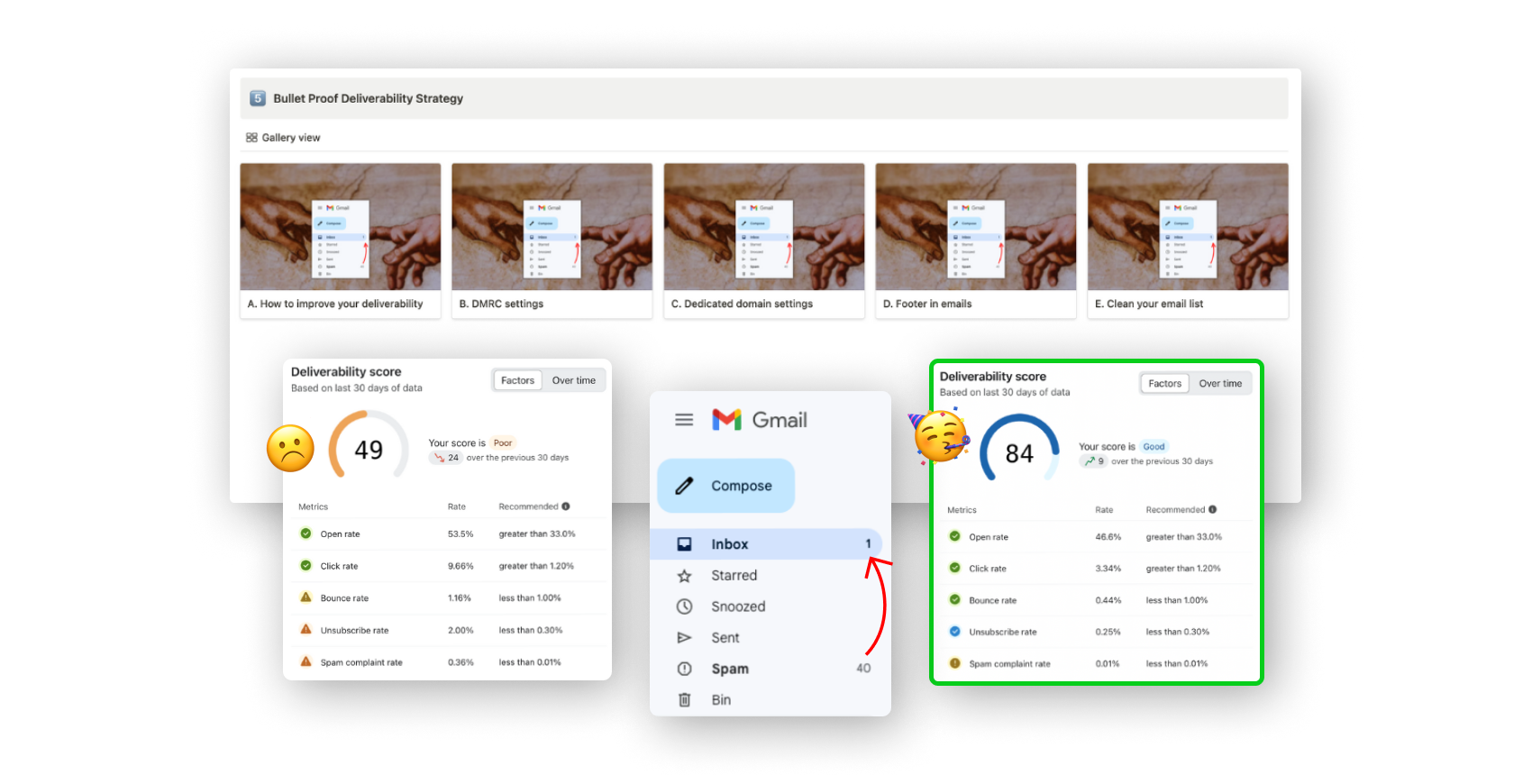 👉 Your emails end up in spam. Without healthy open rates, even the best strategy can fail miserably.