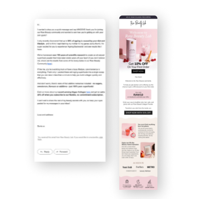 Your emails now vs after Email Flow Kit